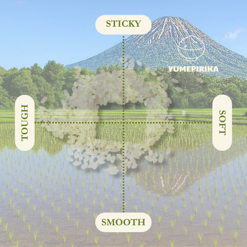 強い粘りに適度な柔らかさと甘みがあるのが特徴で、北海道米らしく魚介料理との相性も抜群。噛めば噛むほど甘みが美味しく、何杯でも食べたくなるお米です。